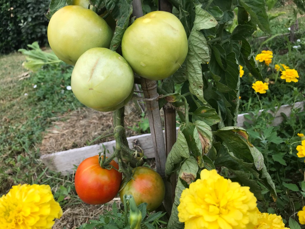 En tout cas, ce matin, j’ai taillé et enlevé toutes les branches où les feuilles étaient marrons et secs! Les tomates vont mieux respirer.