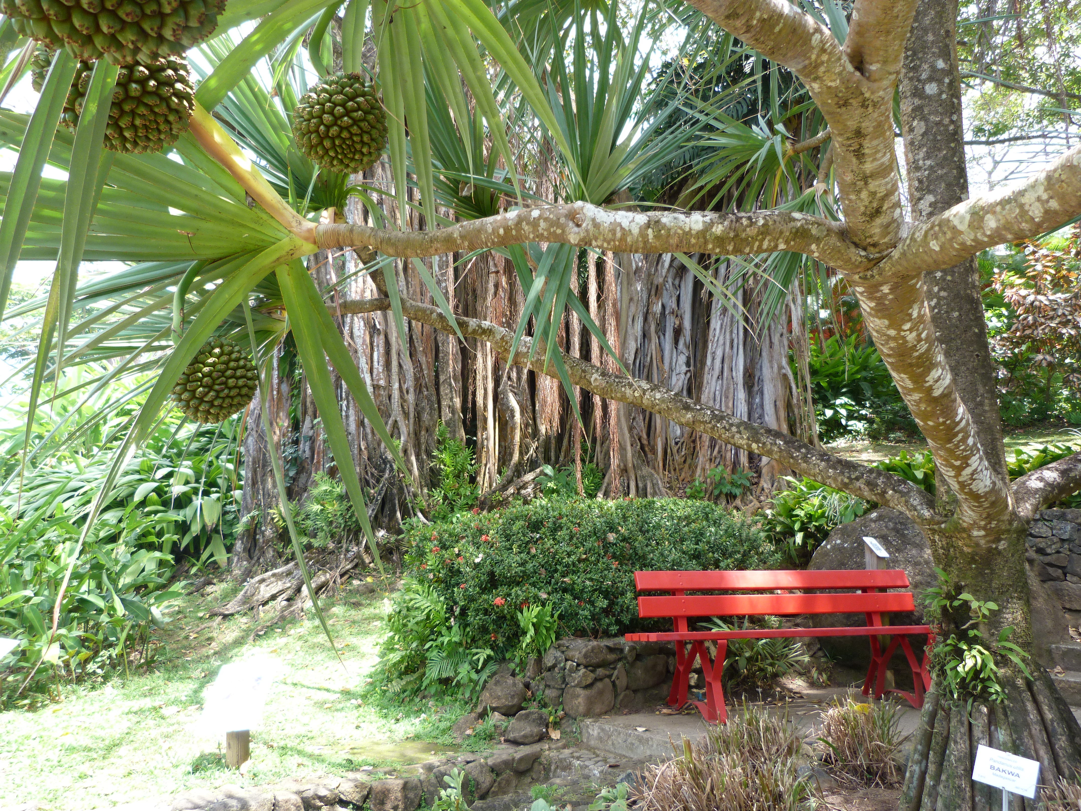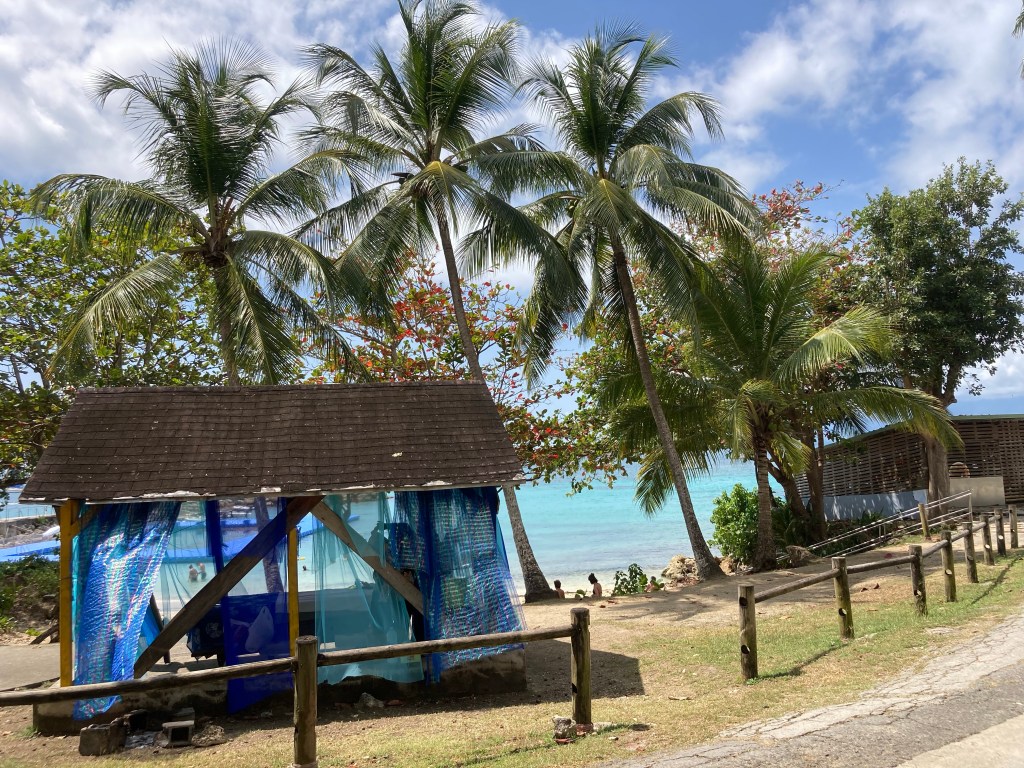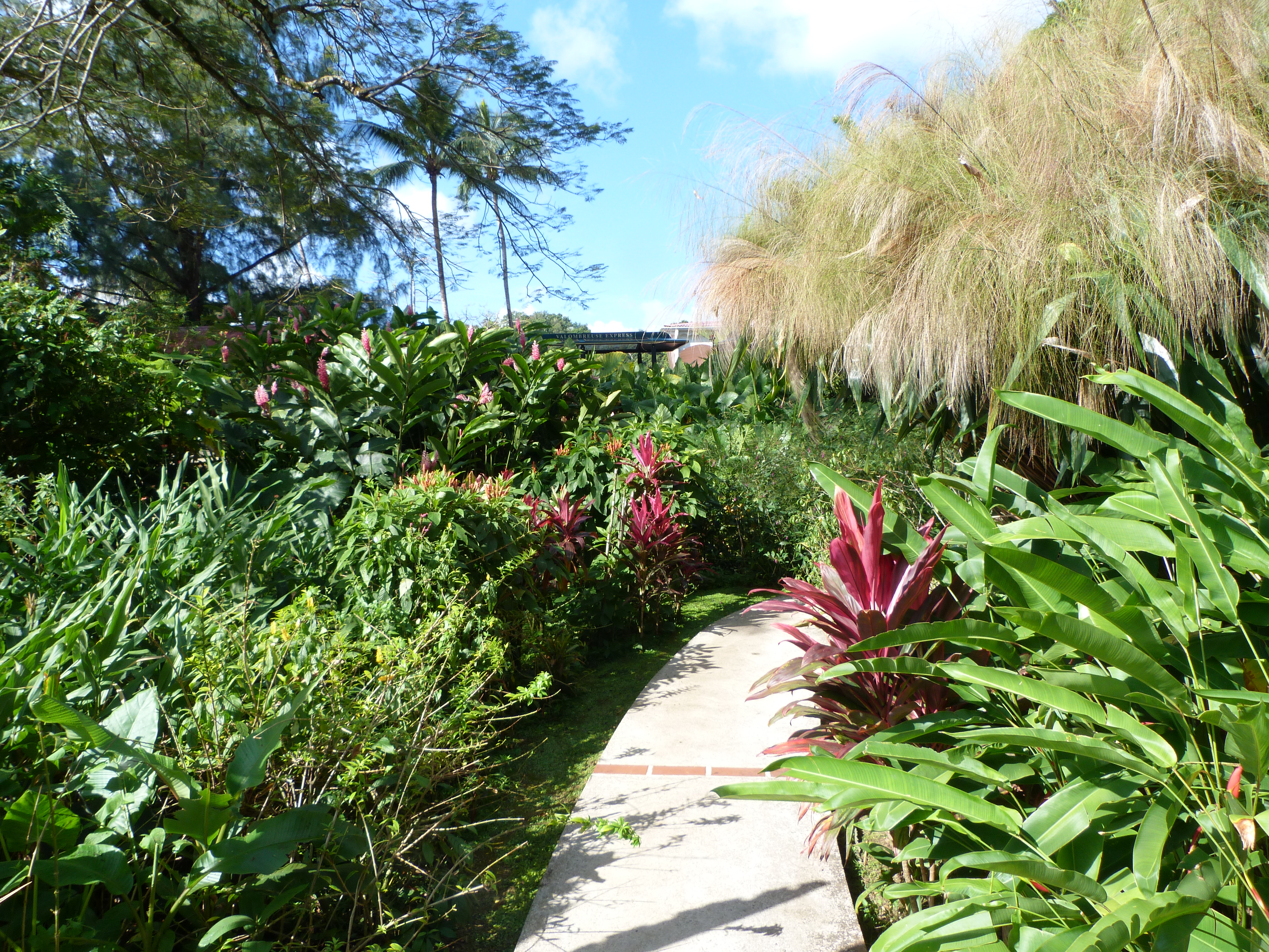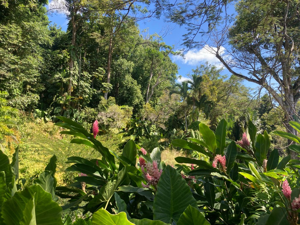Ce fut plus galère. Il était midi et j’avais sacréement chaud. Heureusement, j’étais juste à côté du musée du chocolat. Je pus oser demander à un couple de retraité de me déposer au jardin botanique de Deshaies, ancienne propriété de Coluche.