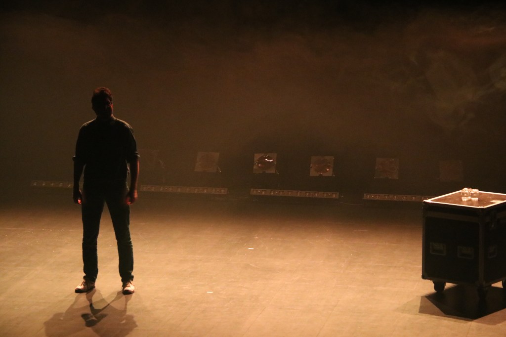 J’entendais le brouhaha de la salle pleine. La scène était envahie d’une lumière bleue donnant une atmosphère hors du temps avec de la fumée. Je fis venir un petit sourire dans mon ventre. Puis ce fut le moment !